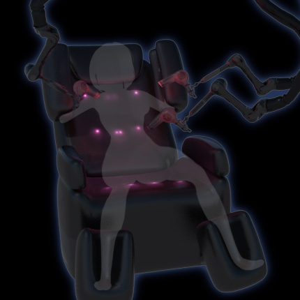 全身の筋肉をもみ玉とエアーバッグでほぐし、やさしい出力のドライヤーで乳房や下腹部を丁寧に温めて血行を良くすることで感度を高め、性感を受け入れる準備をさせるマシン。